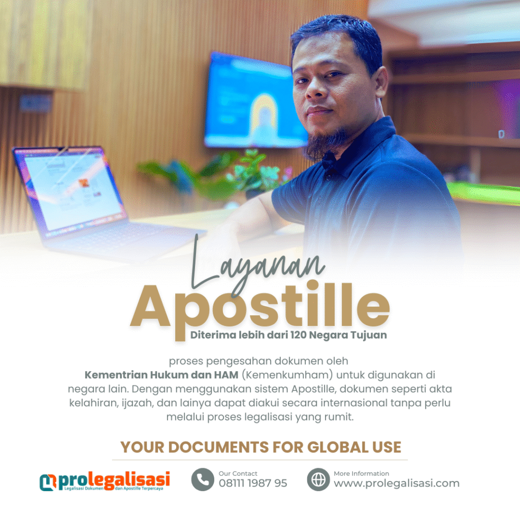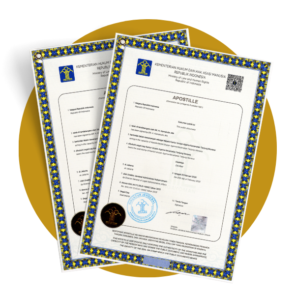 Kami melayani Legalisasi Dokumen, Apostille, dan Penerjemahan Tersumpah dengan pengalaman lebih dari 10 tahun. Didukung tim profesional, kami memastikan dokumen Anda sah, terverifikasi, dan siap digunakan di dalam maupun luar negeri.
